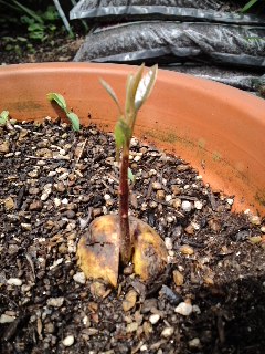 種を植えておいたらこうして伸びてきてはを出し始めましたよ\(^o^)/
