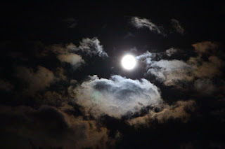 怪しく、早く移動する雲を照らしながら見えたブルームーン!
